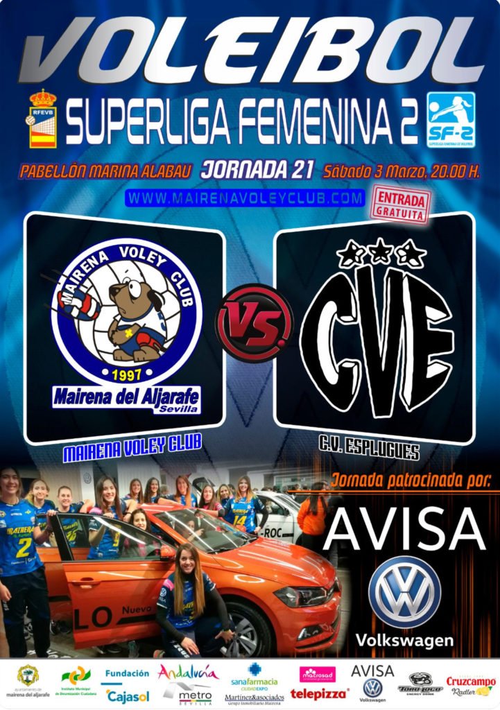 VOLVEMOS A JUGAR EN CASA!!? SUPERLIGA DE VOLEIBOL!!? PARTIDAZO!! ? Nos visita el C.V. ESPLUGUES (Barcelona).? VAMOS A POR TODAS!? VAMOS MVC! VAMOS AFICIÓN!? JORNADA: @AVISAVolkswagen ? @Cajasol @mairenAljarafe @_metrodesevilla @Macrosad @sanafarmacia @DeporteAND