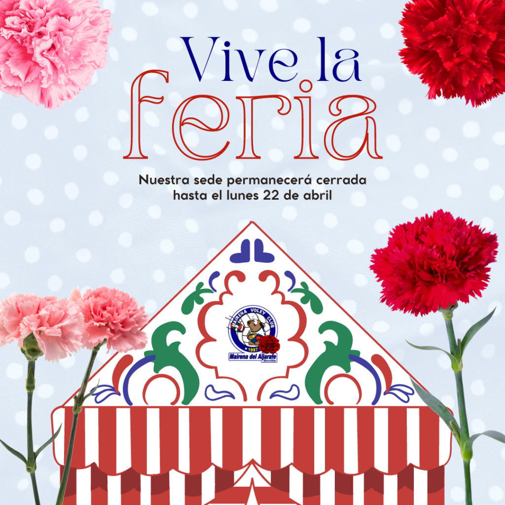 ¡𝘝𝘪𝘷𝘦 𝘭𝘢 𝘍𝘦𝘳𝘪𝘢 𝘥𝘦 𝘈𝘣𝘳𝘪𝘭! Del 𝟭𝟱 𝗮𝗹 𝟮𝟬 𝗱𝗲 𝗮𝗯𝗿𝗶𝗹, 𝗻𝘂𝗲𝘀𝘁𝗿𝗮 𝘀𝗲𝗱𝗲 𝗲𝘀𝘁𝗮𝗿𝗮́ 𝗰𝗲𝗿𝗿𝗮𝗱𝗮. Pero no os preocupéis, ¡estaremos de vuelta con muchas ganas a partir del lunes 22 de abril! ¡𝙌𝙪𝙚 𝙙𝙞𝙨𝙛𝙧𝙪𝙩𝙚́𝙞𝙨 𝙢𝙪𝙘𝙝𝙤 𝙚𝙨𝙩𝙖 𝙨𝙚𝙢𝙖𝙣𝙖! 627 09 58 74 mairenavoleyclub.com Info@mairenavoleyclub.com Av. de la Constitución, 2, 41927 Mairena del Aljarafe, Sevilla #MairenaVoleyClub #escuelavoleysevilla #DeporteSevilla […]